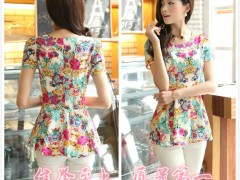 2014春装新款 韩版修身 收腰显瘦 遮肚腩碎花 印花短袖雪纺衫 衬衫 雪纺衬衫 短袖衫等本公司地址:广东广州广东广州市白云区石井街大朗村大朗中路西街15号